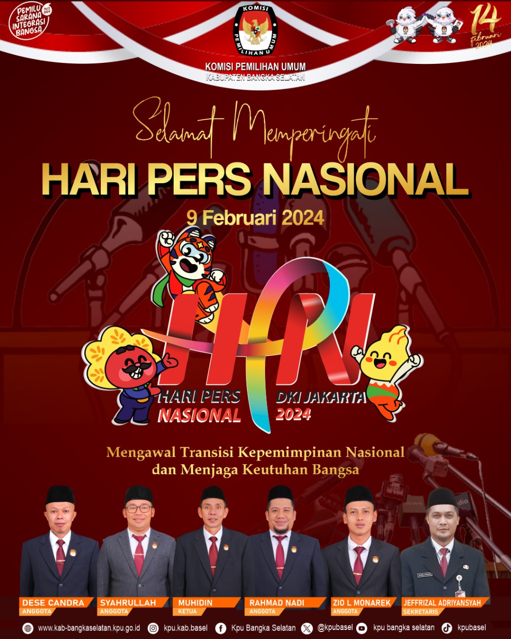 TOBOALI – Pemerintah daerah kabupaten Bangka Selatan, Bupati Riza Herdavid mengucapkan Selamat Hari Pers Nasional (HPN) 9 Februari 2024, kepada seluruh Insan Pers di Kabupaten Bangka Selatan. Jumat (9/02/2024).