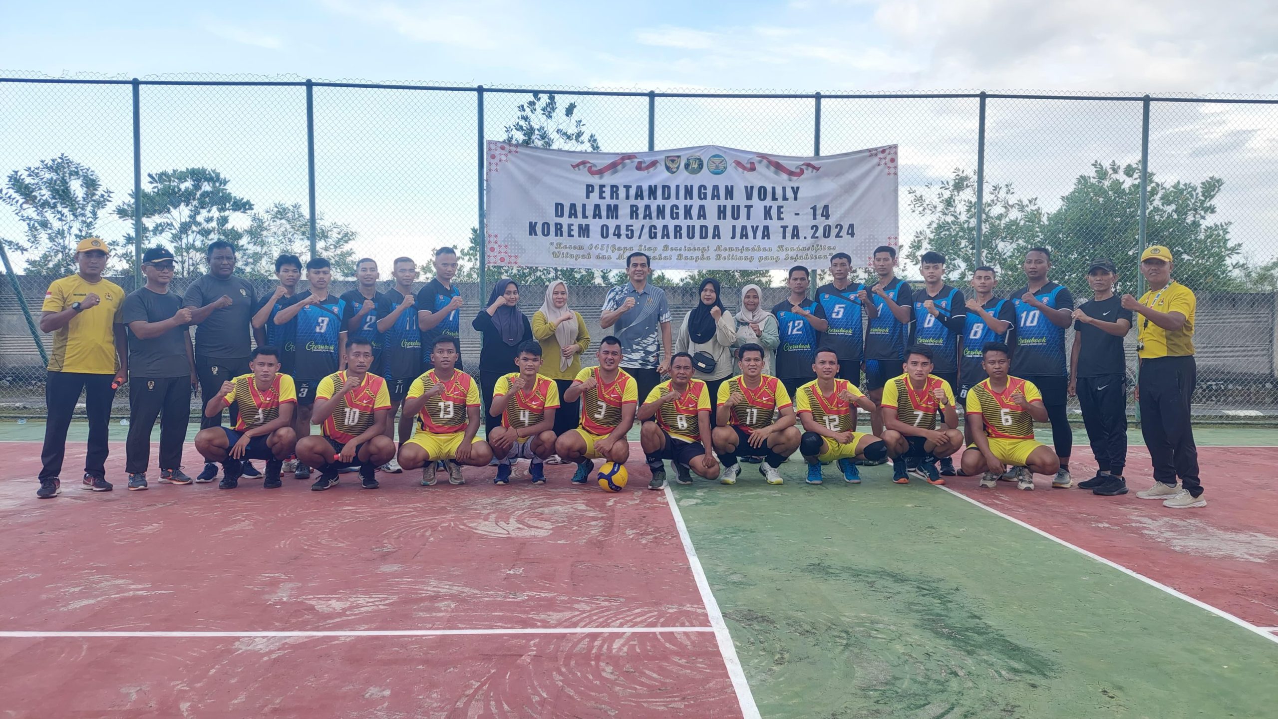 Kompetisi volly antar satuan TNI AD di wilayah Garnizun Bangka Belitung tersebut digelar di Lapangan Volly Korem 045/Garuda Jaya, Kota Pangkal Pinang pada Senin (10/06/2024).