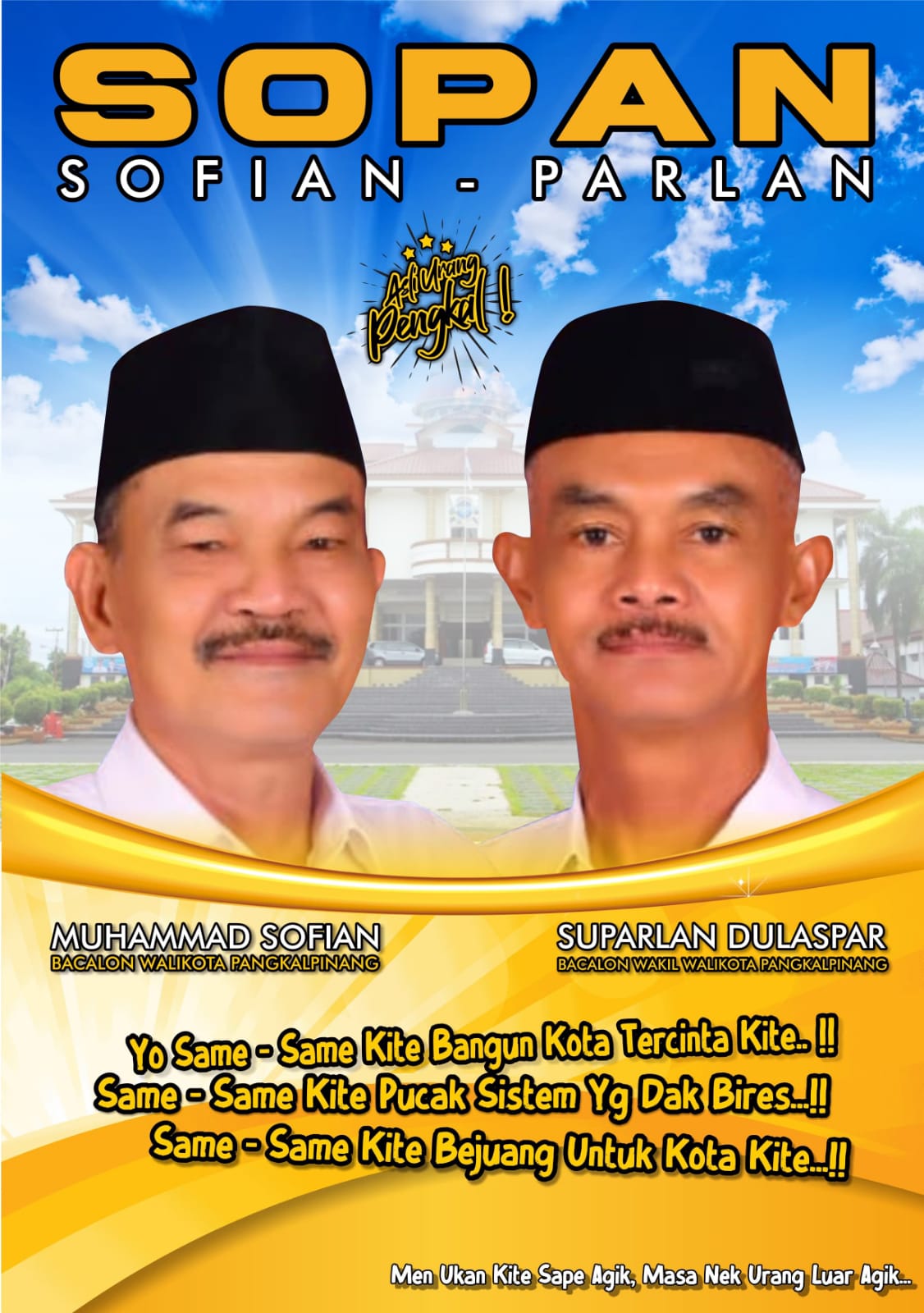 “Kami percaya bahwa Sofian, dan Parlan, adalah sosok yang tepat untuk memimpin Pangkalpinang menuju masa depan yang lebih cerah.