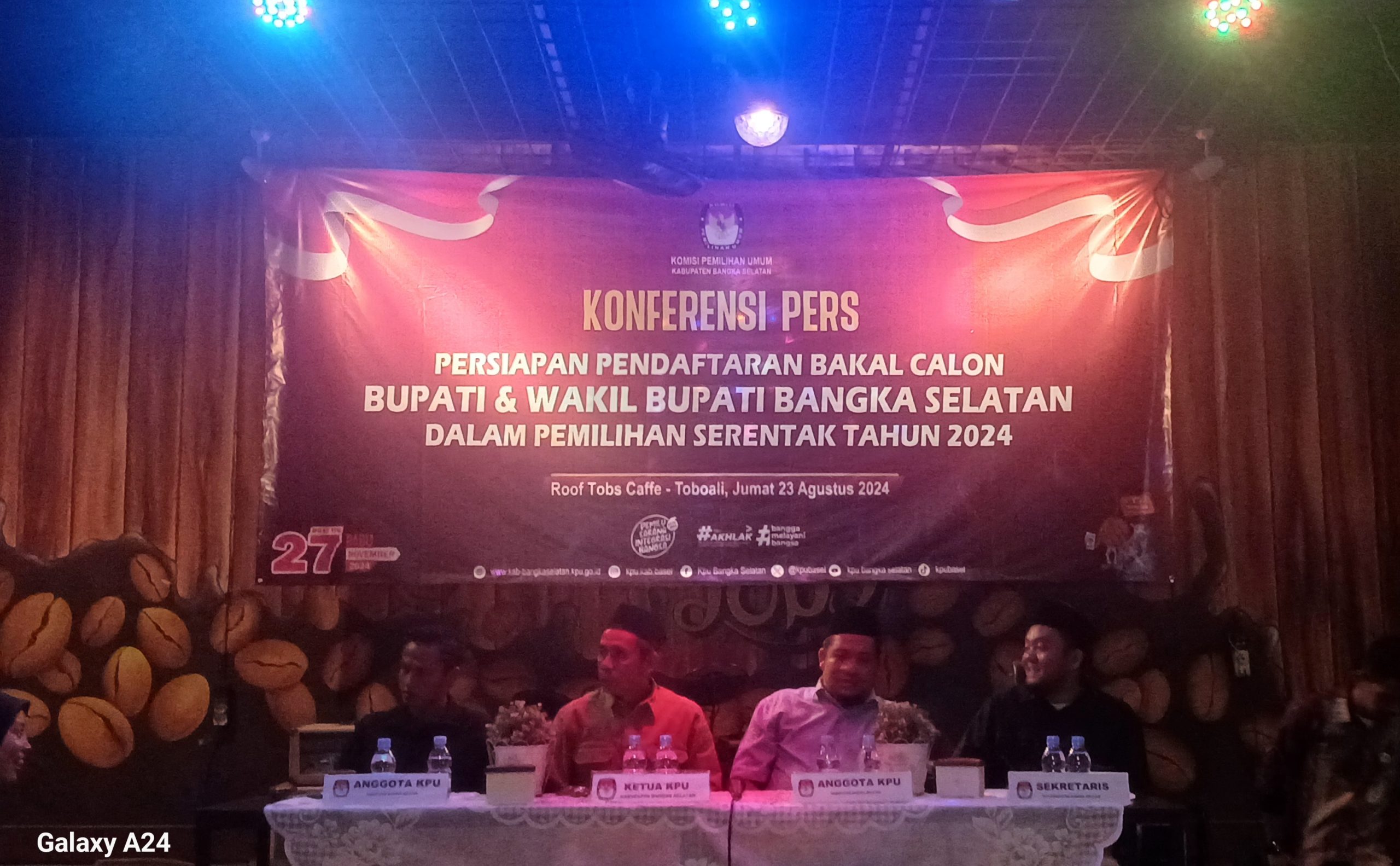 Pelaksanaan konfrensi Pers dalam rangka Persiapan Pendaftaran pasangan Calon Bupati dan Wakil Bupati Bangka Selatan dalam Pemilihan Serentak Tahun 2024.