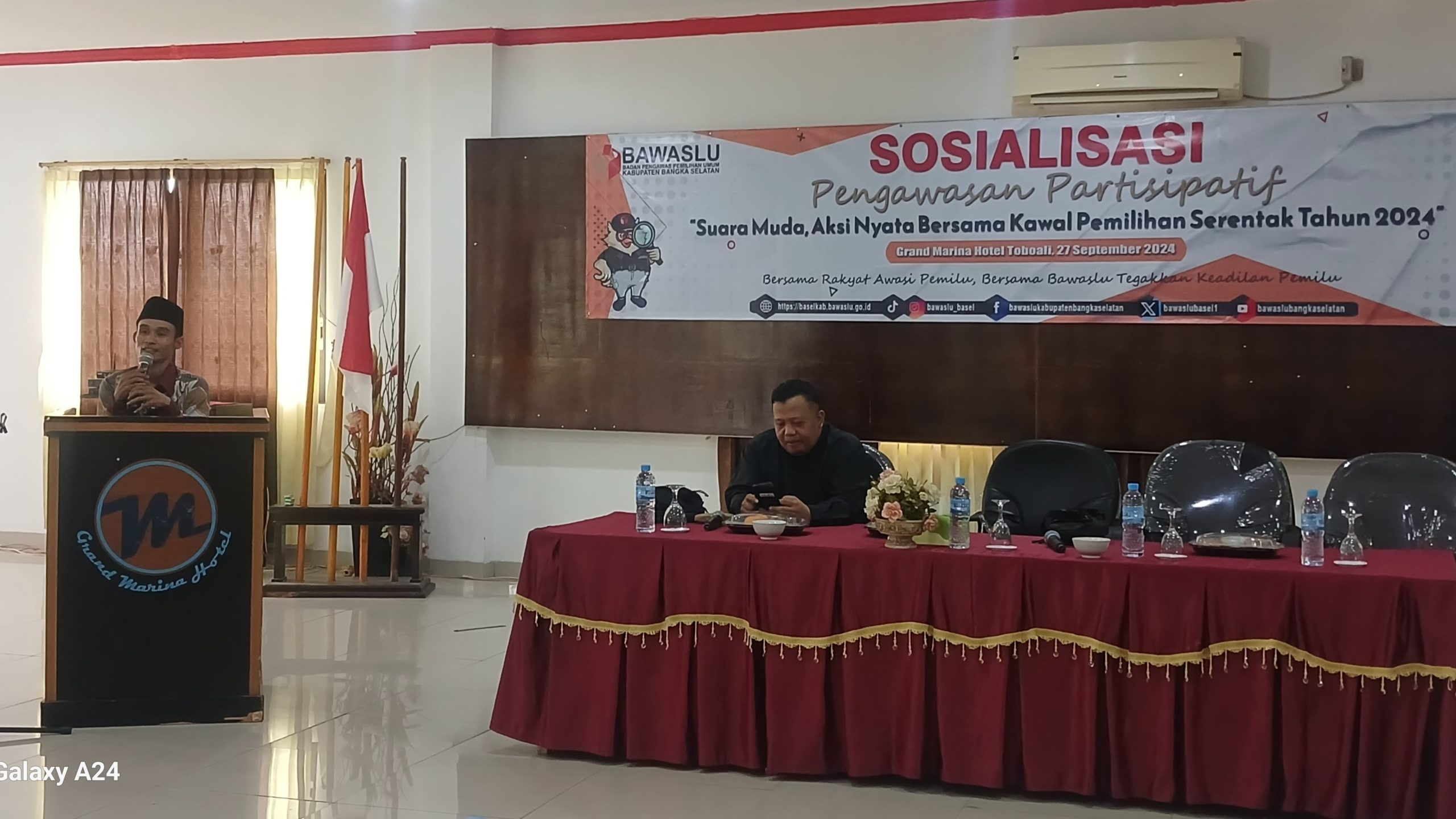 Toboali –  Badan Pengawas Pemilu (Bawaslu) Kabupaten Bangka Selatan, resmi menggelar sosialisasi pengawasan partisipatif bertajuk “Aksi Nyata” Bersama kawal Pilkada Serentak 2024, bertempat di Hotel Marina, Jumat, 27 September 2024