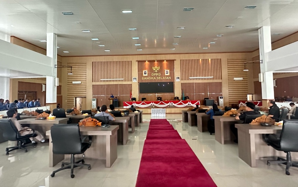 Rapat Paripurna DPRD Kabupaten Bangka Selatan hari ini dalam rangka penyampaian Rancangan Awal Rencana Pembangunan Jangka Menengah Daerah Kabupaten Bangka Selatan Tahun 2025-2029 dan 3 (tiga) Rancangan Peraturan Daerah Kabupaten Bangka Selatan Tentang ; Kabupaten Layak Anak, Perubahan Ketiga Atas Peraturan Daerah Kabupaten Bangka Selatan Nomor 17 Tahun 2016 Tentang Organisasi Perangkat Daerah Kabupaten Bangka Selatan, serta Pencegahan dan Peningkatan Kualitas Terhadap Perumahan Kumuh dan Permukiman Kumuh.