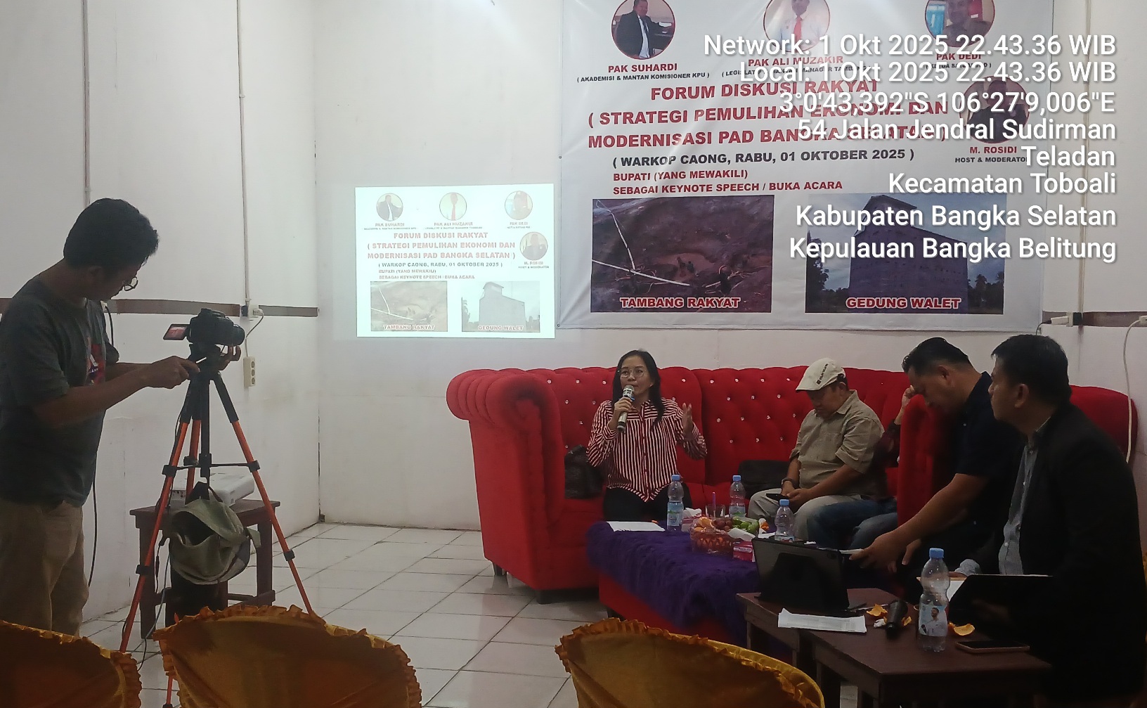 TOBOALI – Kehadiran sejumlah tokoh masyarakat, akademisi, dan perwakilan pemerintah daerah dalam Forum Diskusi Rakyat bertajuk “Strategi Pemulihan Ekonomi dan Modernisasi Pendapatan Asli Daerah (PAD) Bangka Selatan” yang digelar di Warkop Caong, Rabu, (1/10/2025) malam.