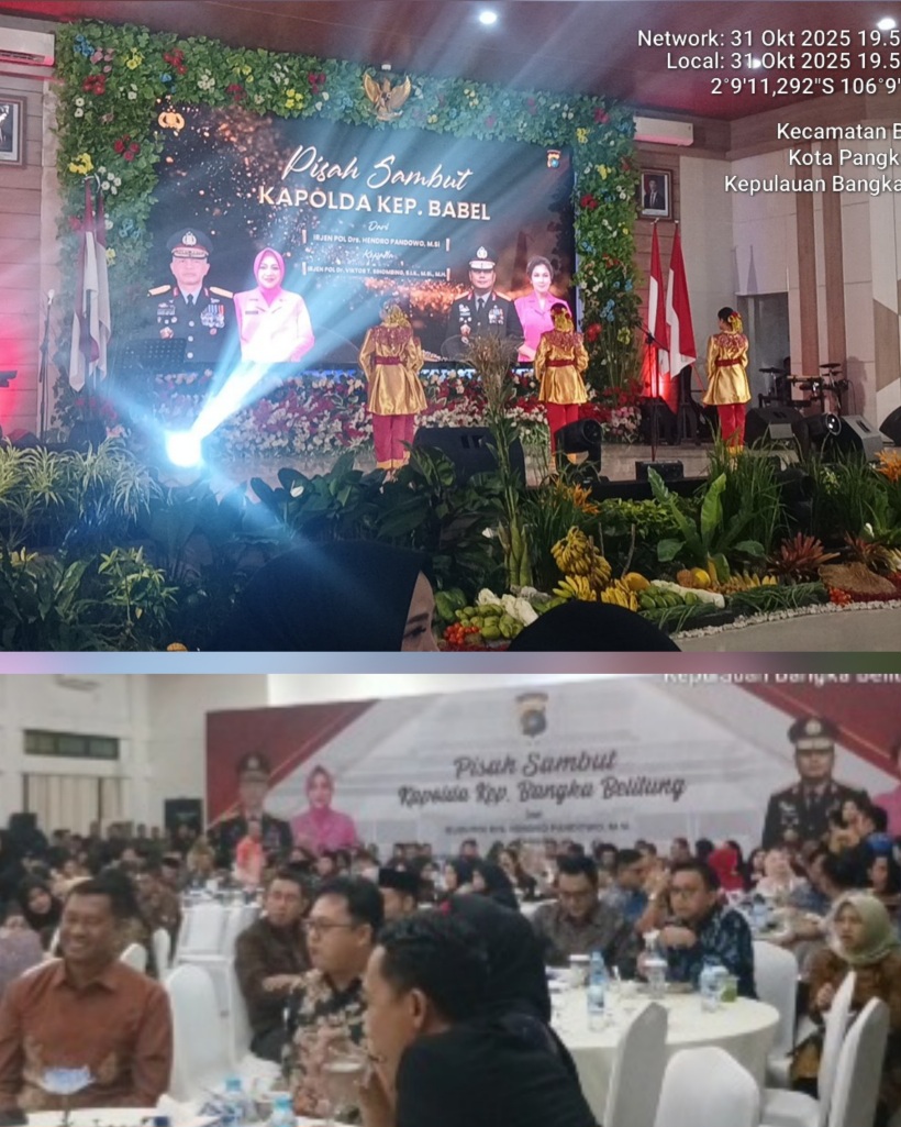 Kegiatan acara pisah sambut dan kenal pamit Kapolda Babel dilaksanakan di Gedung Tribrata Polda Kepulauan Bangka Belitung. Jumat, 31 Oktober 2025.