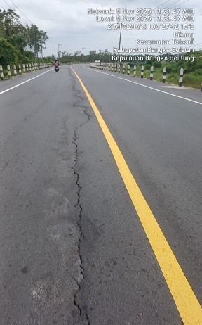 Ia menambahkan, laporan mengenai kerusakan di ruas tersebut sudah disampaikan sejak perbaikan pertama, dan pihaknya terus berkoordinasi dengan Balai Pelaksanaan Jalan Nasional (BPJN) Provinsi Kepulauan Bangka Belitung.