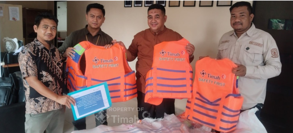 PT TIMAH Tbk berkolaborasi Cabang Dinas Kelautan dan Perikanan Provinsi Kepulauan Riau di Karimun memberikan bantuan 80 pacs jaket pelampung yang akan didistribusikan kepada nelayan yang ada Kabupaten Karimun diantaranya nelayan di Kundur Barat, Ranggam dan Leho.