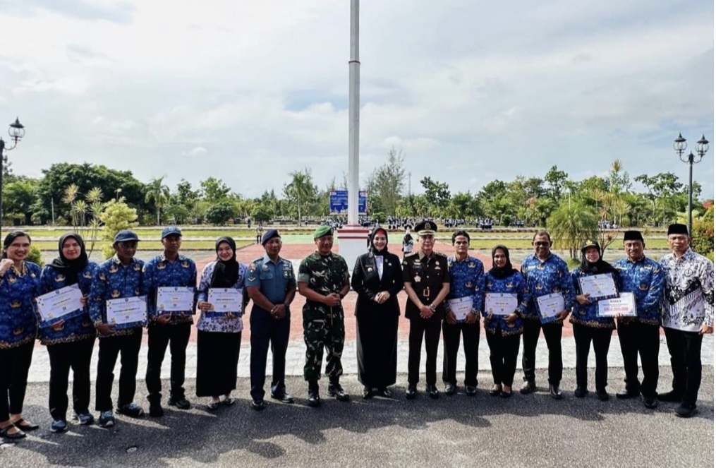 Wabup Debby mengajak seluruh peserta upacara untuk berkumpulkan rasa syukur kepada Allah SWT atas kesempatan memperingati tiga momentum besar yang memiliki arti strategi bagi dunia pendidikan dan penguatan aparatur negara.