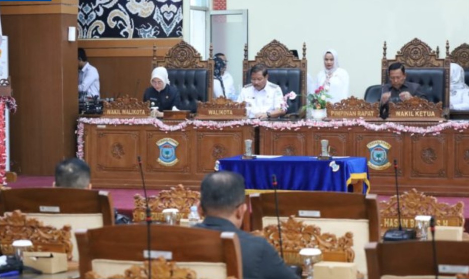 Rapat paripurna dipimpin Wakil Ketua I DPRD Kota Pangkalpinang, Hibir, dan dihadiri Wali Kota Pangkalpinang, Prof. H. Saparudin, Wakil Wali Kota Dessy Ayutrisna, Sekda Mie Go, jajaran pejabat eselon II, serta para camat dan lurah.